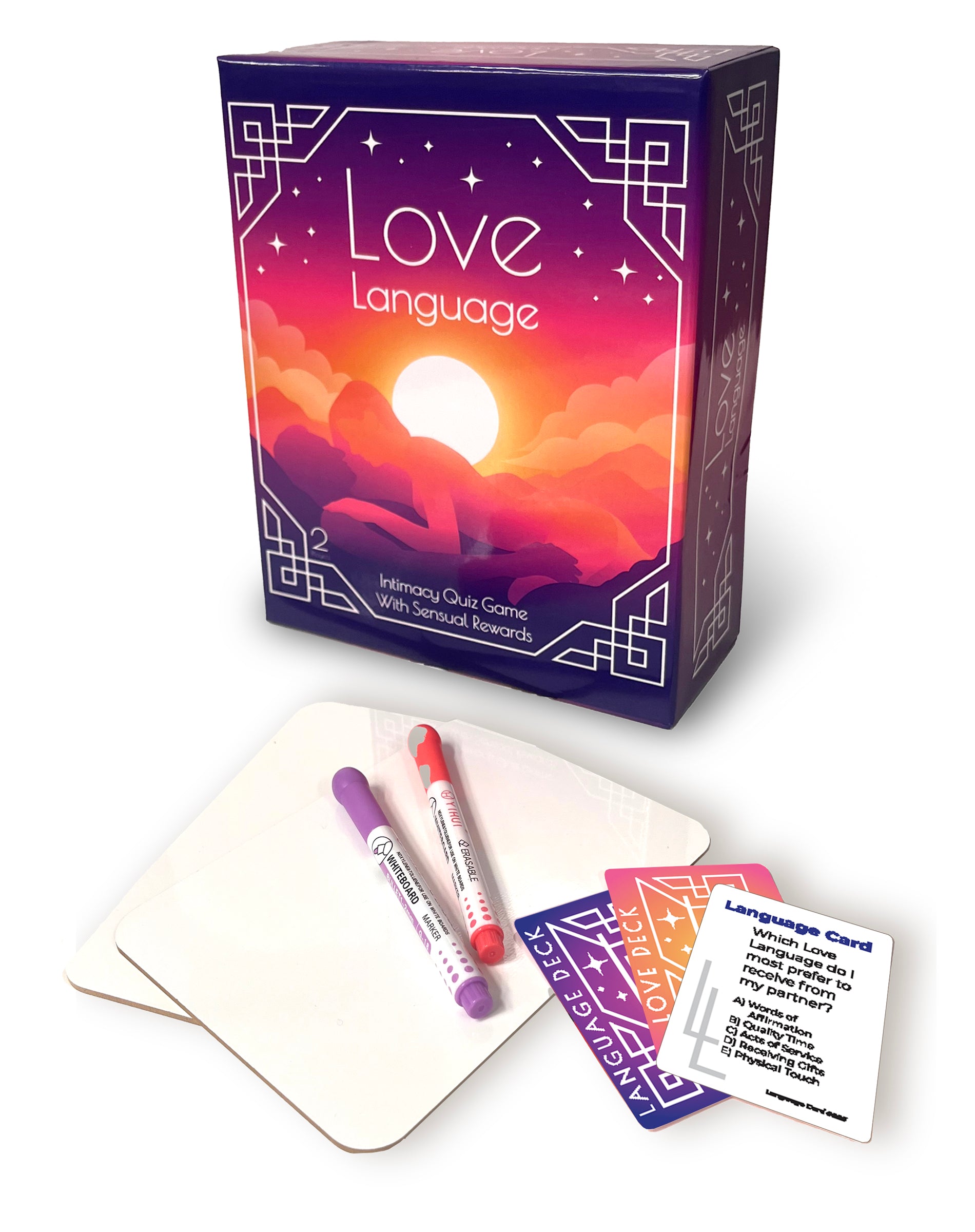 Unlock a deeper connection with your partner through the Love Language Game, the ultimate intimacy quiz designed for couples. Dive into a world where fun meets sensuality, as you and your lover take turns as the asker and guesser. Draw from an intriguing pile of cards that prompt revealing questions, while your partner pens their responses on the whiteboard. It's not just about gaining points—it's about winning at love. With every correct answer, you edge closer to tantalizing rewards that enhance both fantasy and reality. Transform your relationship into an adventure filled with laughter, passion, and shared secrets. Let the Love Language Game be your guide to a more intimate bond—buy now and start exploring each other's desires!