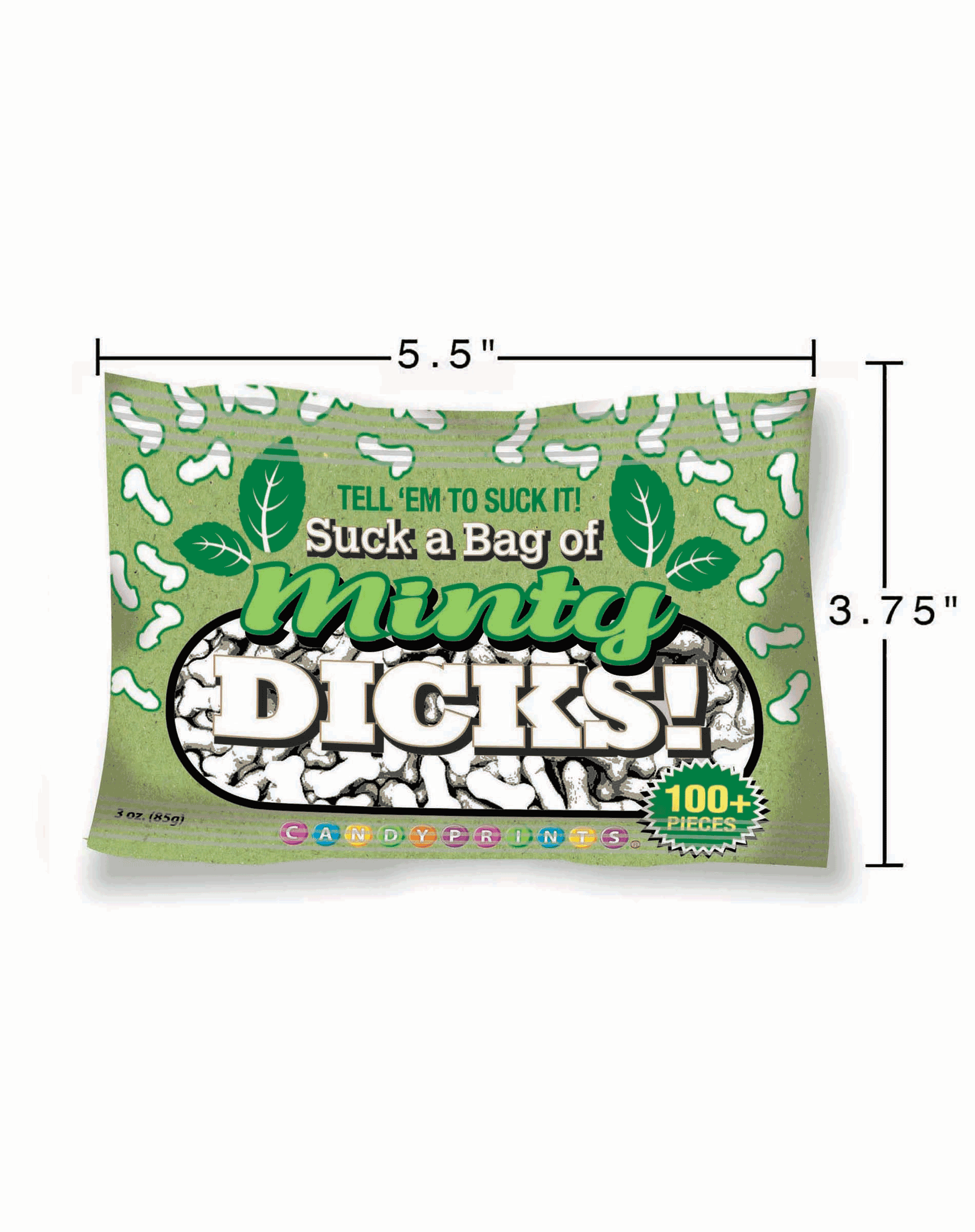 Breath mints with an attitude. Suck a Bag of Minty Dicks are a refreshing and hilarious way to freshen your breath. Each bag contains 3oz approx. 100 penis mints per bag.