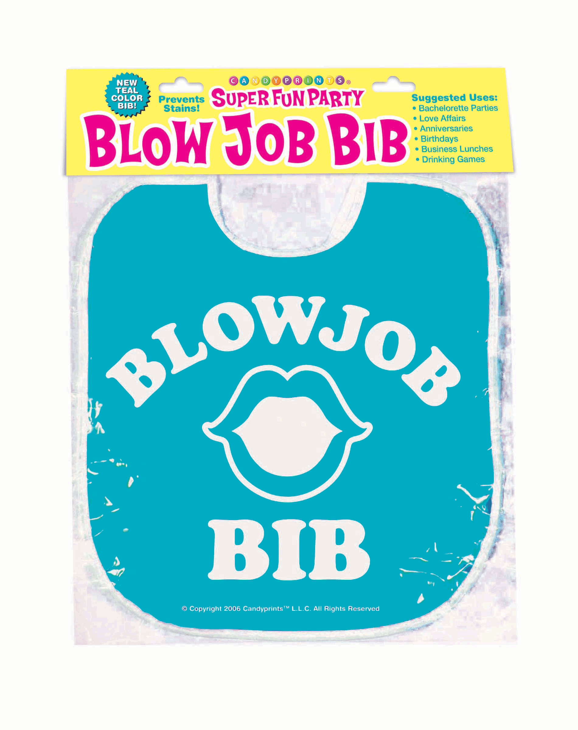 Top Selling Blow Job Bib is a hilarious gag gift for your bachelor, bachelorette, or corporate party. Each bib has neck tie-straps that will keep the bib in place while performing fellatio. Keep your couture clean and him happy with the blow job bib! One bib per poly bag with header card.