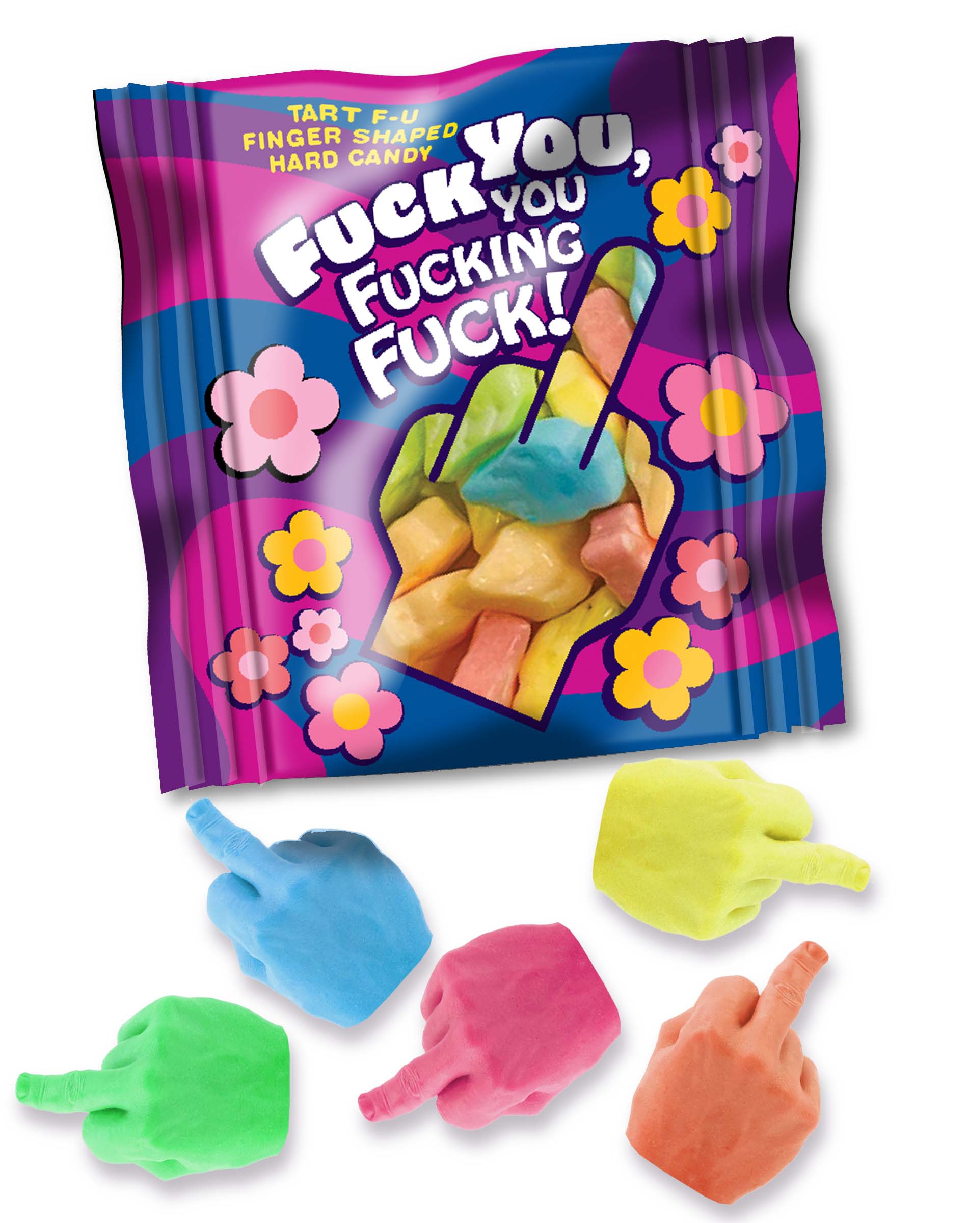Introducing the "Fuck You, You Fucking Fuck!" Candy – the sweet treat that says what everyone else is thinking! This display of 100 mini-packs, each filled with 5 sassy middle finger candies, is your new best friend for any occasion that needs a little extra attitude. Increase your impulse sales at the counter, use as party favors or as a cheeky surprise for those special people in your life who just need a friendly reminder of how you really feel. With a taste that's as bold as its message, these candies will leave everyone laughing and craving more. Get ready to add a sprinkle of sass to your day – grab your bag today and let the fun begin!