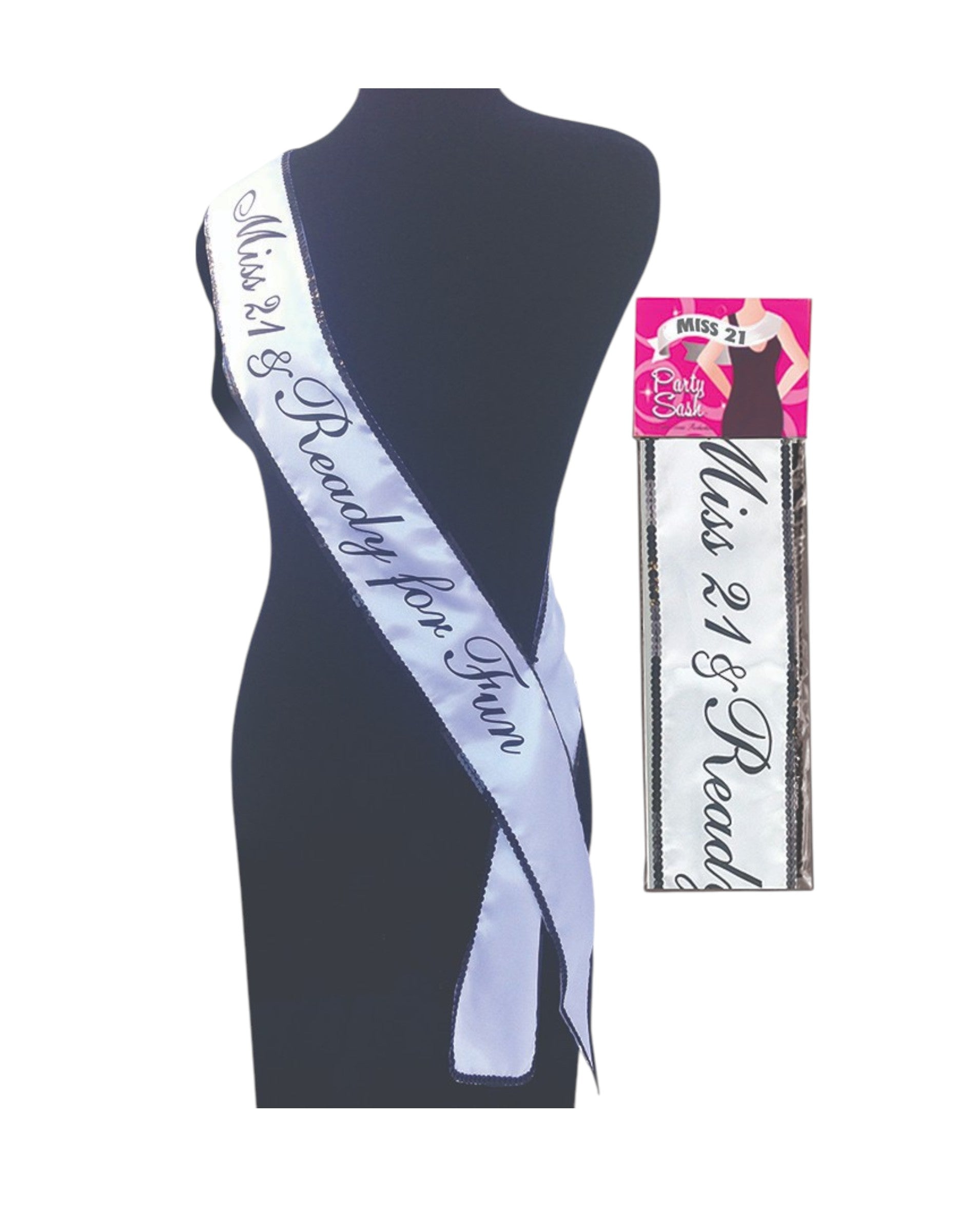 A sparkling addition to your 21st Birthday wardrobe that's sure to Sparkle on your fun night. You'll definitely be the center of attention with this 6ft. long black sparkle sash. For additional fun, pin on candy or condoms.