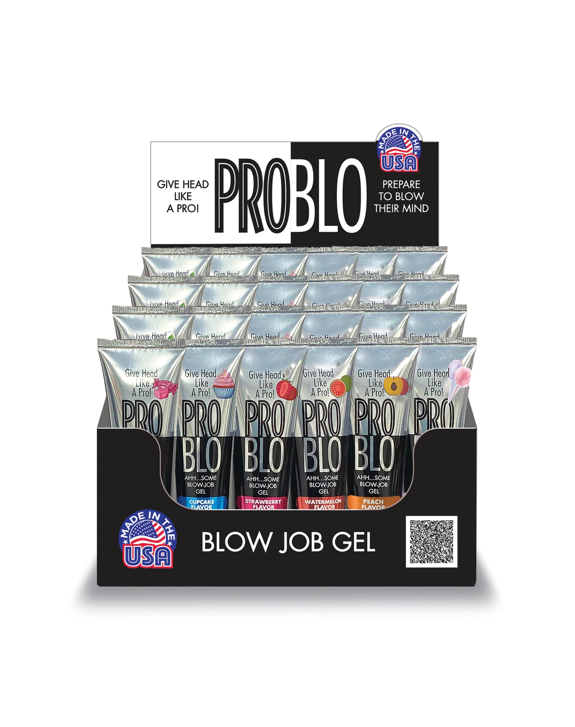 Boost your sales effortlessly with the Pro Blo Oral Pleasure Gel Display of 24! Featuring 24 full-size, two-ounce tubes in an enticing variety of six delicious flavors—Peach, Strawberry, Watermelon, Cupcake, Bubblegum, and Cotton Candy—this display caters to every taste and preference. Pro Blo Oral Pleasure Gel is designed to enhance oral encounters with increased wetness and delicious flavors. With its juicy wetness and irresistible taste, Pro Blo takes pleasure to a whole new level.
