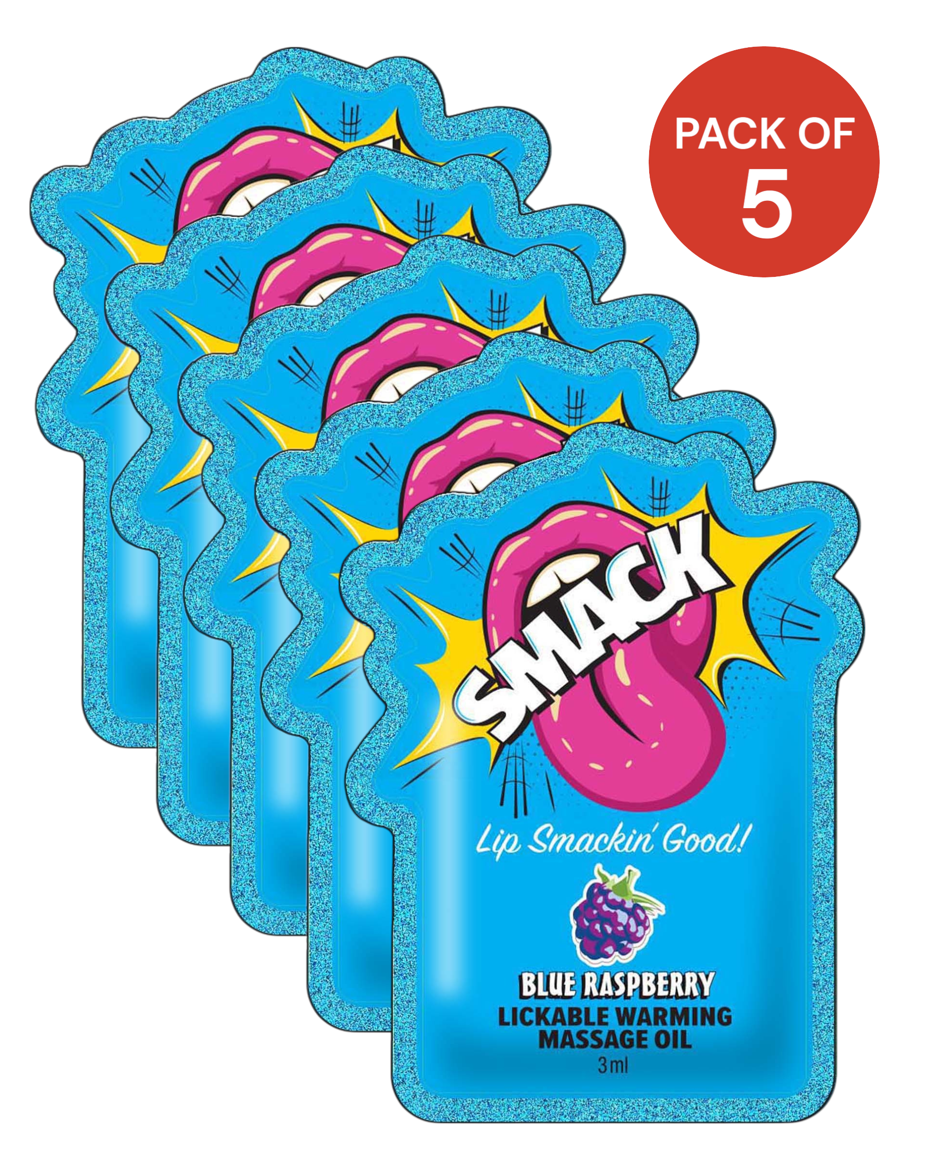 SMACK Warming & Lickable Massage Oil 3ML Pouch -Pack of 5, Blue Raspberry 🫐
