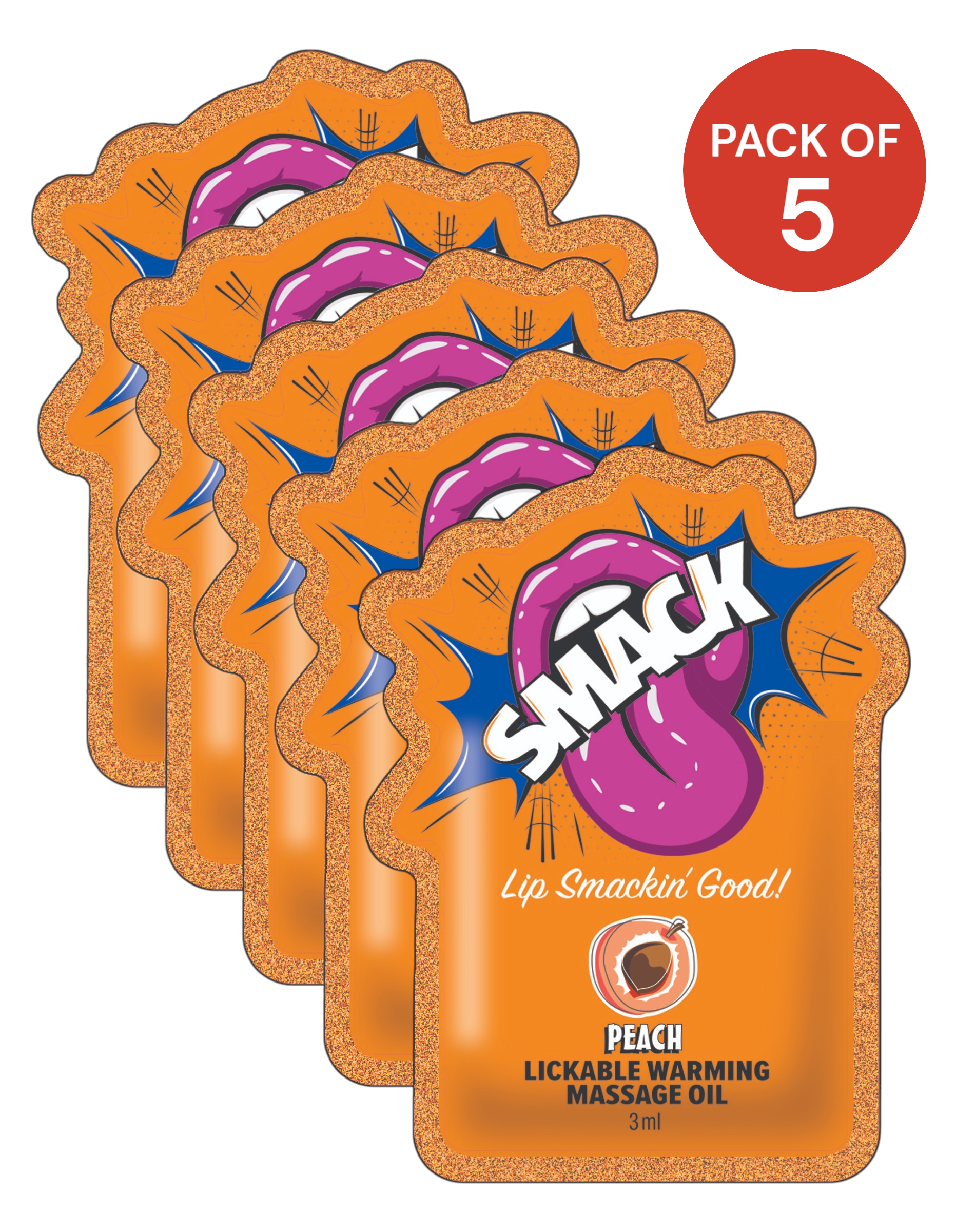 SMACK Warming & Lickable Massage Oil 3ML Pouch -Pack of 5, Peach 🍑